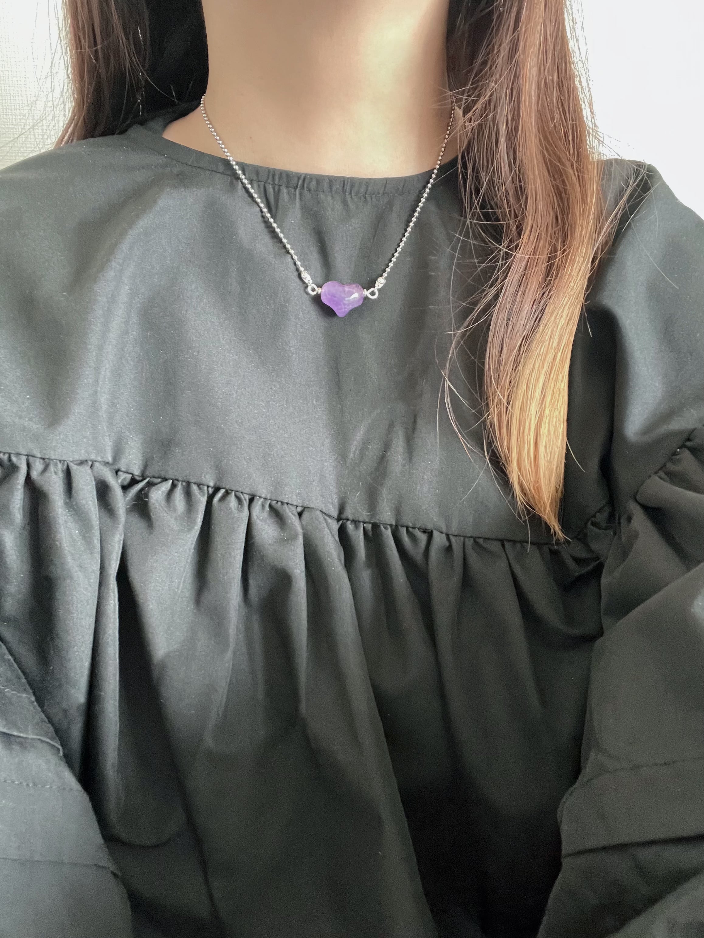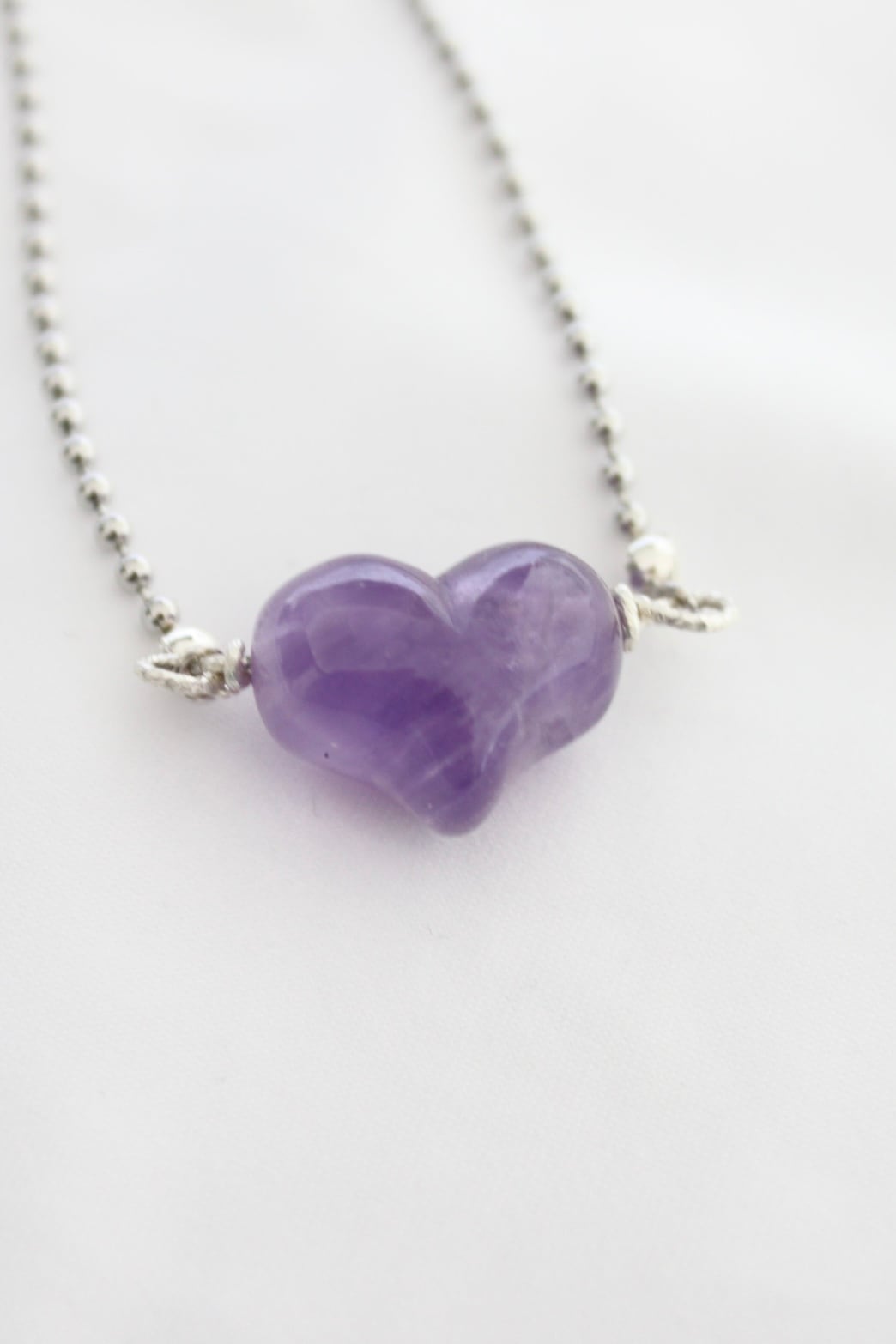 amethyst heart ball chain necklace