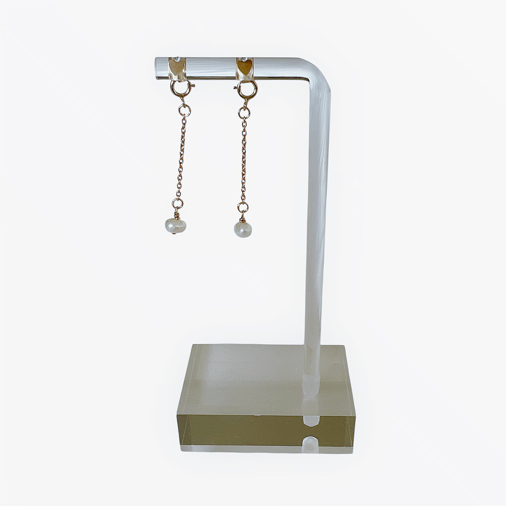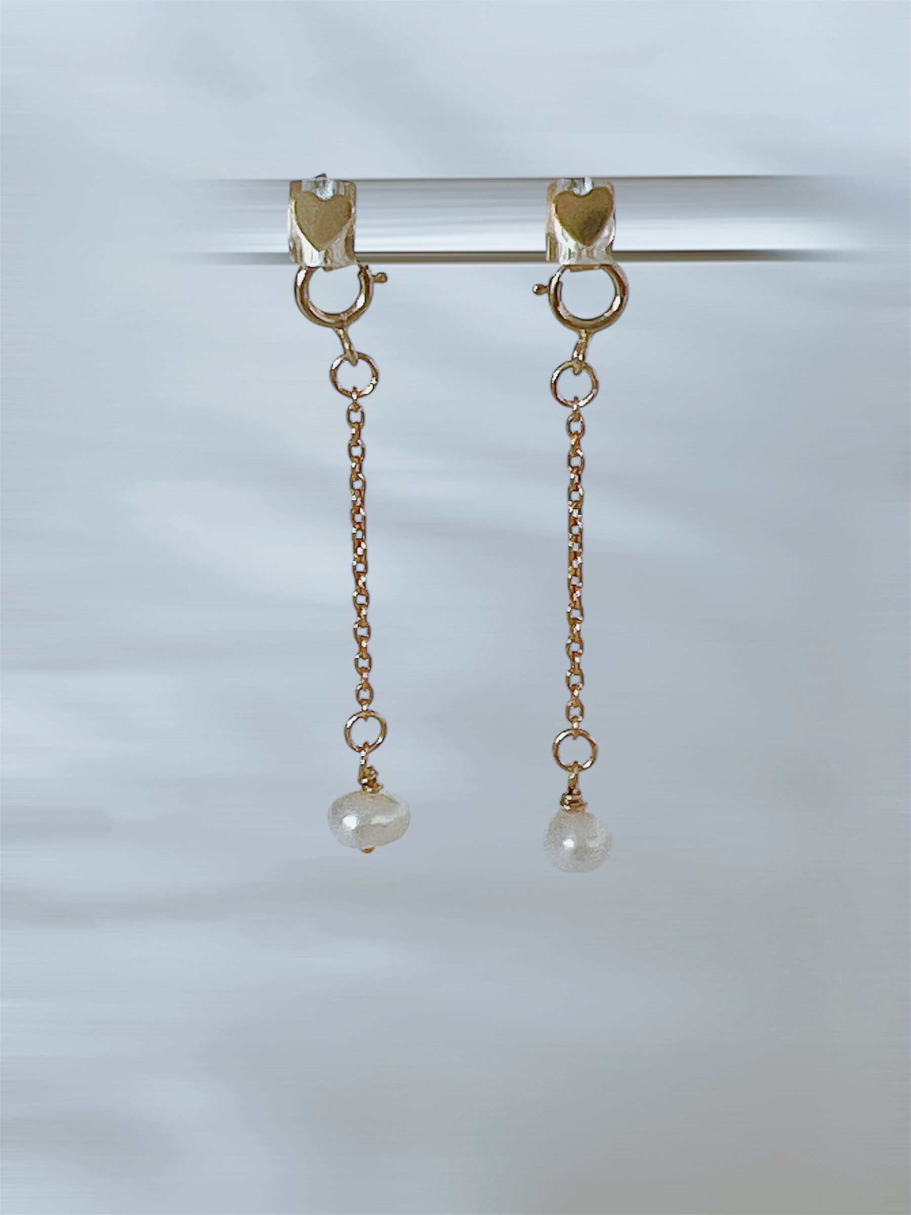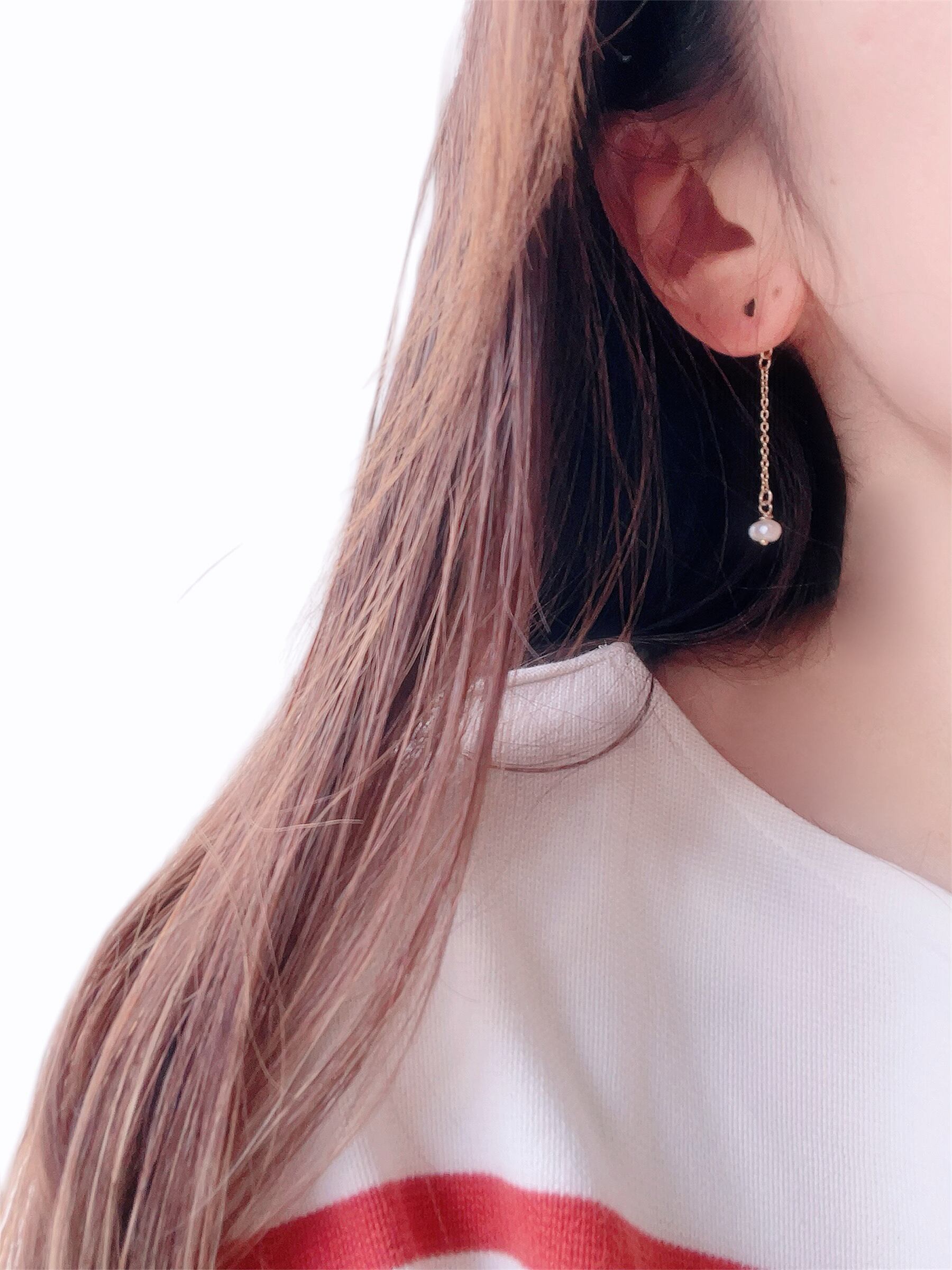 淡水パールのチェーンなので、お手持ちのパールスタッドピアスのキャッチで使っても可愛いかもしれません。