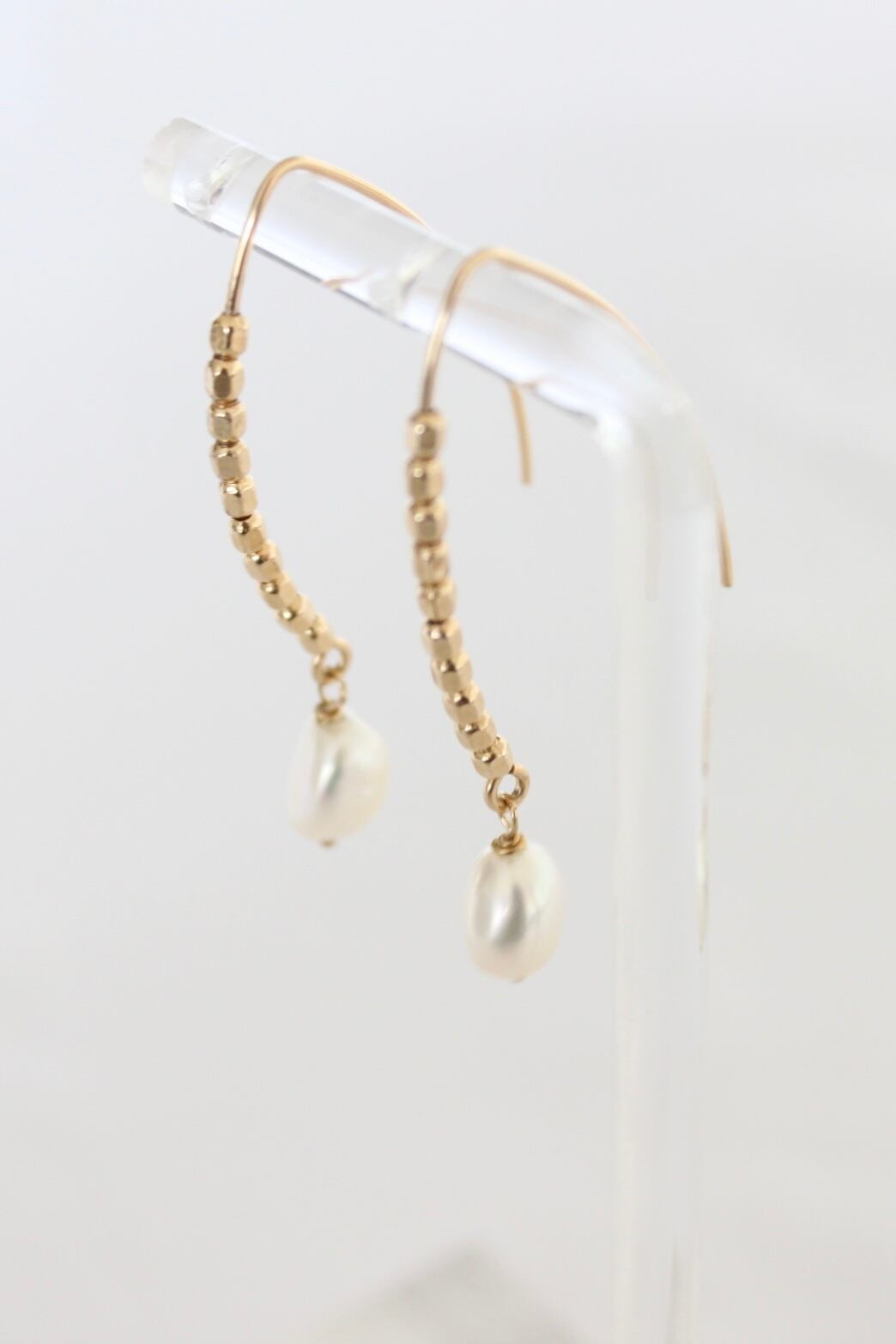 コロンと不揃いの淡水パールを一粒つけて、カジュアルにもフォーマルにもどちらでも♡